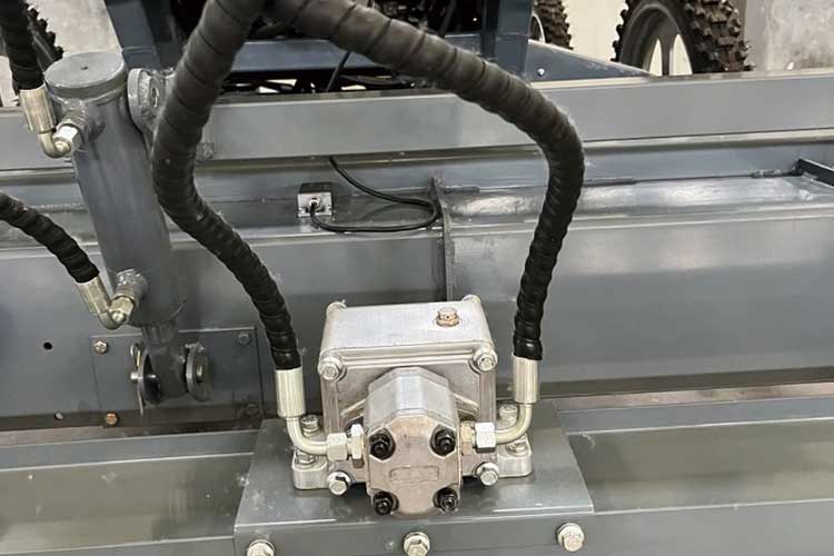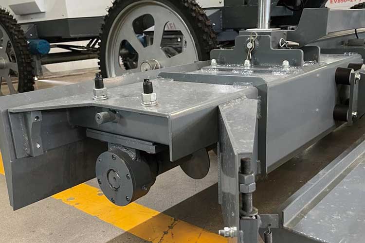 5. The twisted cage between the vibrating plate and the scraper flips the excess concrete onto one side, reducing manpower and improving speed.